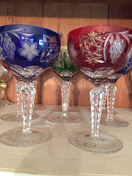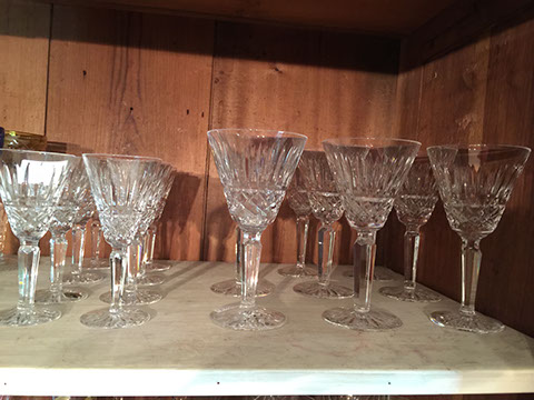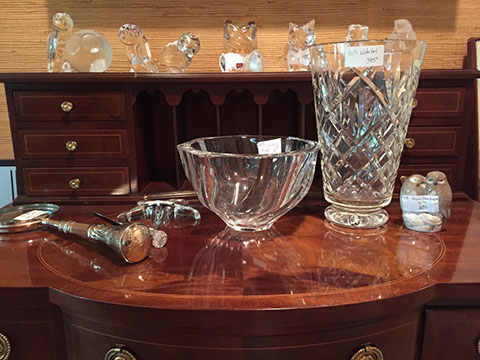 AMERICAN BRILLIANT, ORREFORS, WATERFORD, MURANO. BACCARAT, EARLY AMERICAN PATTERN GLASS, FOSTORIA, HEISEY, SWAROVSKI, VAL ST LAMBERT, CAMBRIDGE AND A LARGE COLLECTION OF STEMWARE FOR KITCHEN AND BAR.