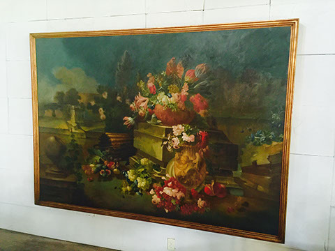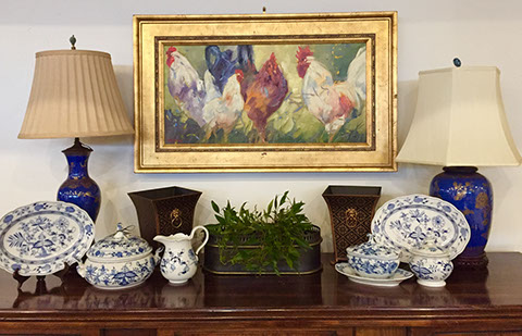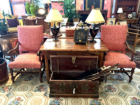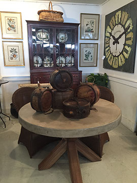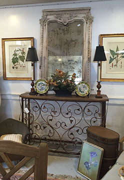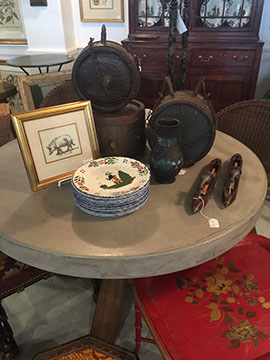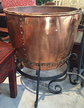Accessories: Floor lamps, table lamps; Mirrors large and small; Aubusson tapestry pillows; wood, copper, brass and tole planters; Tiffany mantel clock; Antique English lap desks; Leather book sets, Wine cask tops, Antique wine canteens